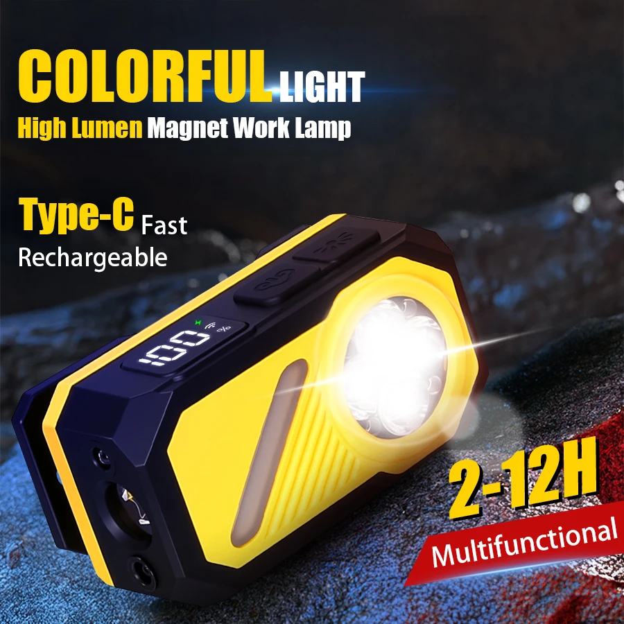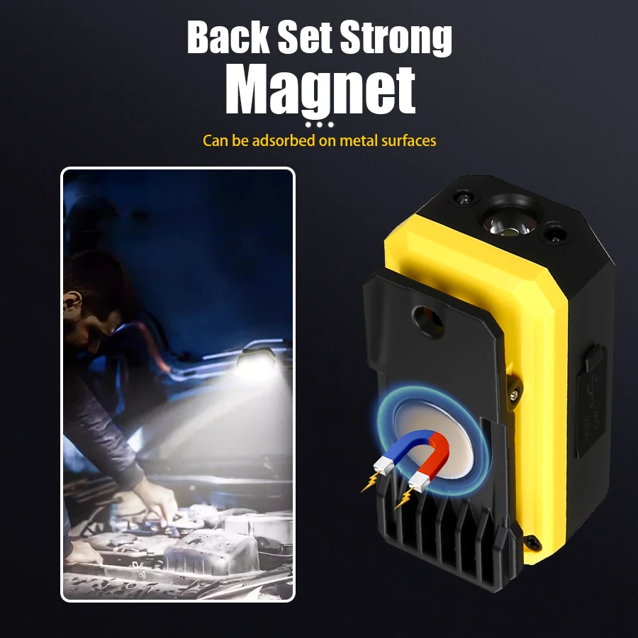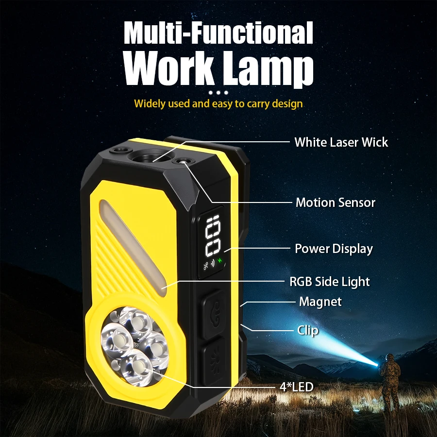 Function: White light wick, motion sensor, power display, RGB side lights, strong magnet, back clip, 4 * LED