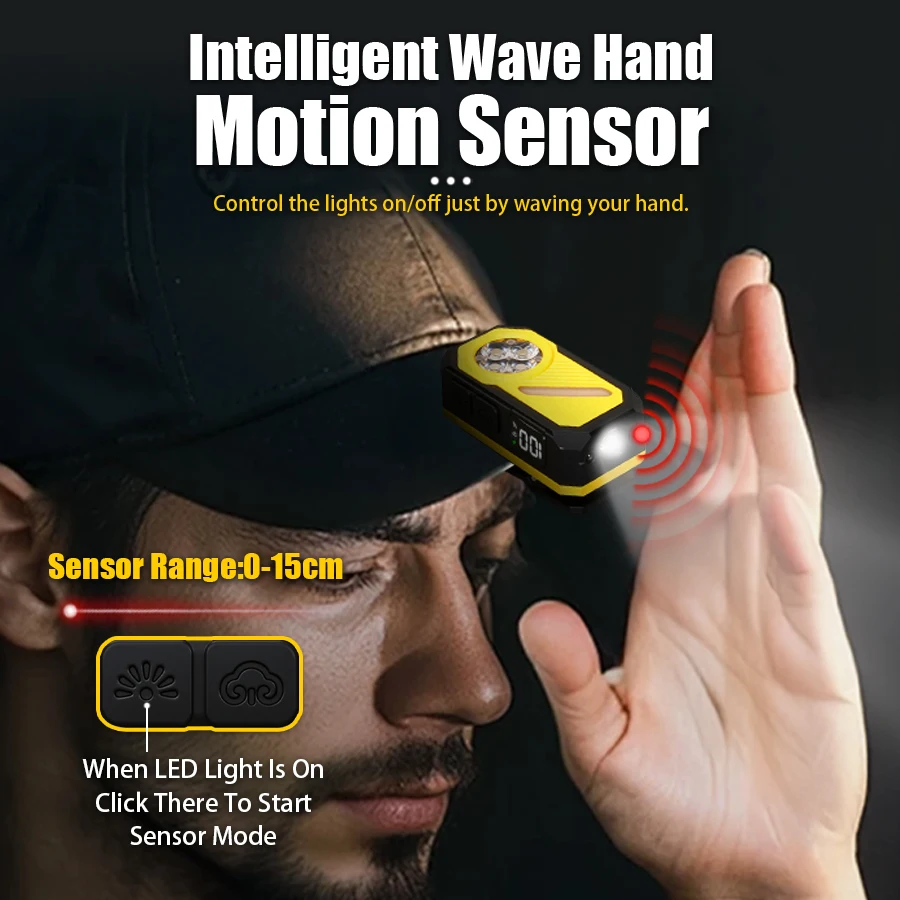 Portable Mini Rechargeable 5 LED Wick Flashlight With Magnet/Clip Waterproof Sensor EDC Torch Sensing Headlight For Outdoor
