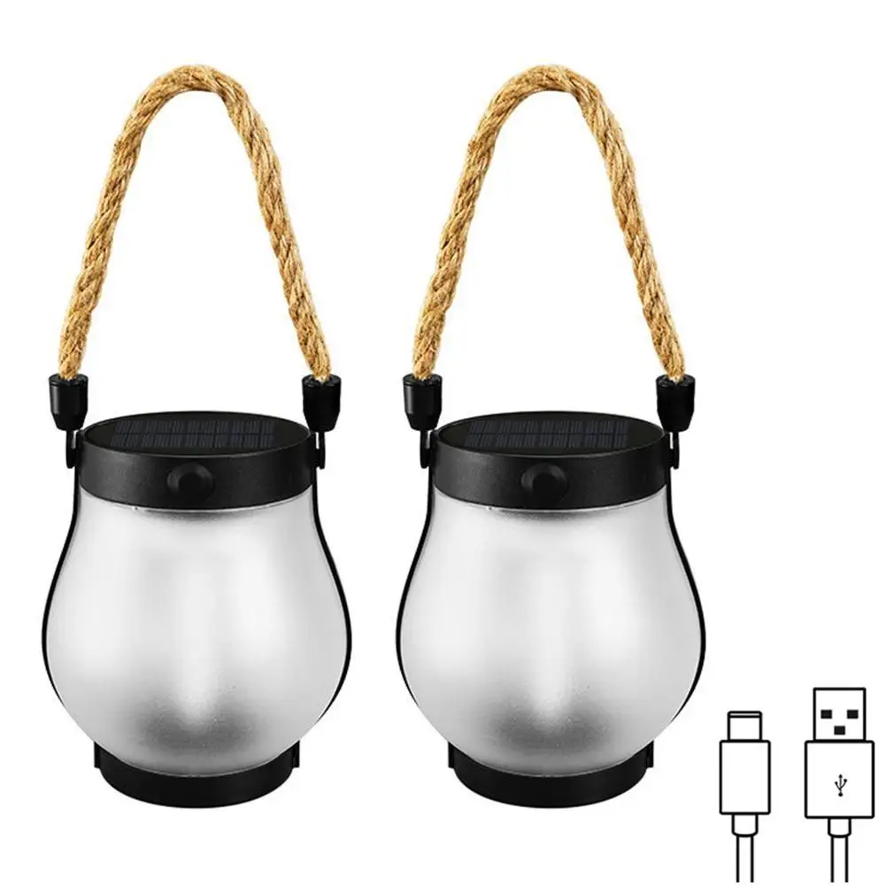Solar Flame Lantern Outdoor Hanging Lamp 800 Lumens With Rope Handle IPX4 Waterproof Decorative Light For Garden Patio Camping